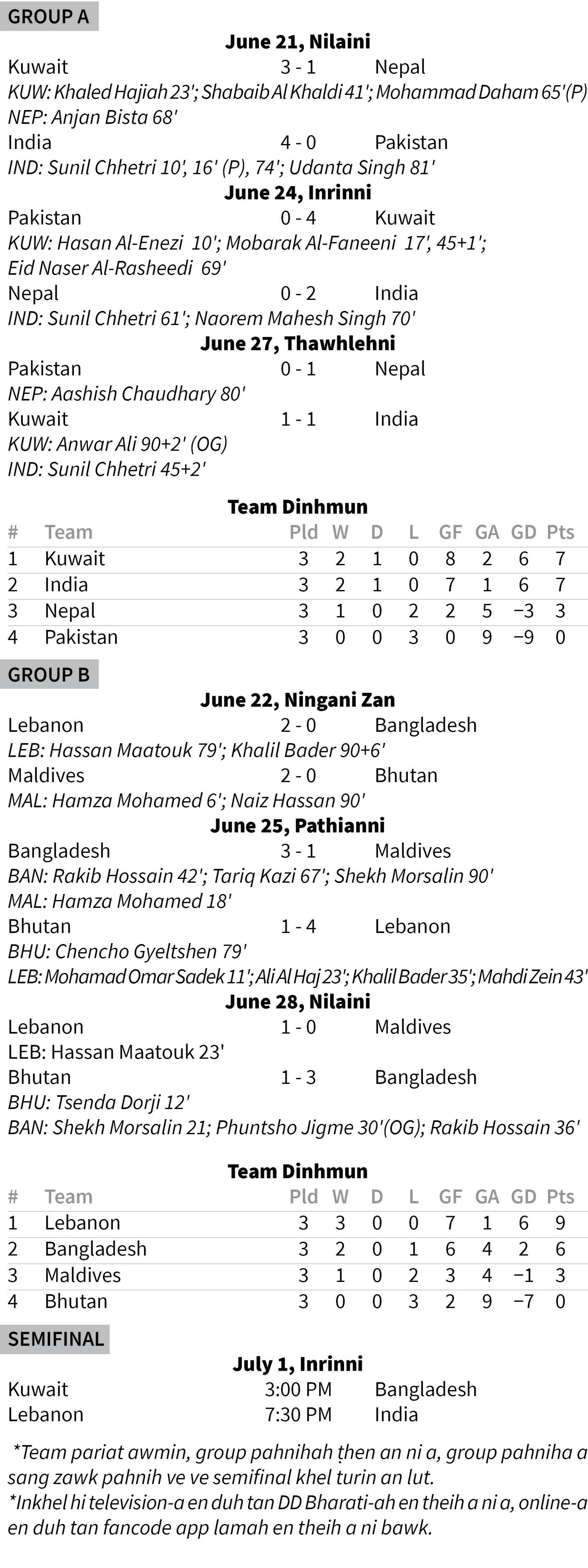 Sree Kanteerava Stadium, Bangalore-a inkhelah Bhutan tan striker Tsenda Dorji chuan goal hmahruai khung mah se, Bangladesh hian striker Shekh Morsalin, Phuntsho Jigme (own goal) leh Rakib Hossain goal hmangin an chhanglet a, 3-1 in an chak ta a ni.