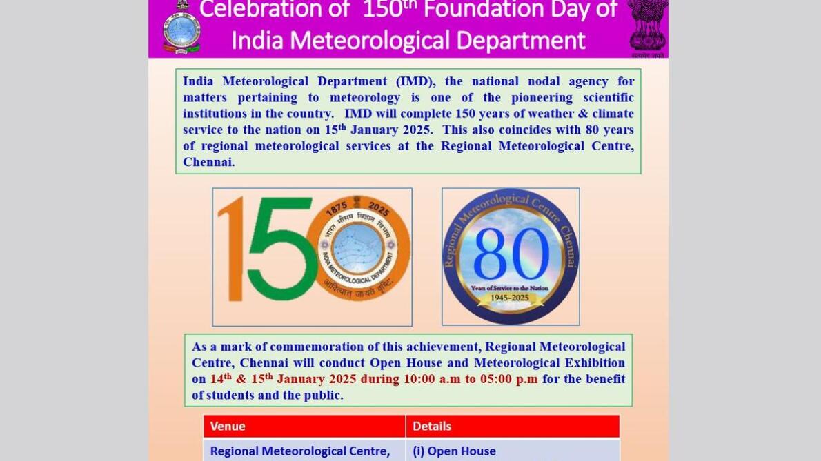 IMD Foundation Day vawi 150-na lawmna atan hian a hlawhtlinnate pholanna tur te, India ram climate-resilient a siamna kawnga a chanvo te pholanna leh khaw lum leh khaw vawt chungchanga service hrang hrang pek kawnga sorkar institution hrang hrangte chanvo pholanna hun te, activity leh workshop hrang hrang te buatsaih a ni dawn a ni.