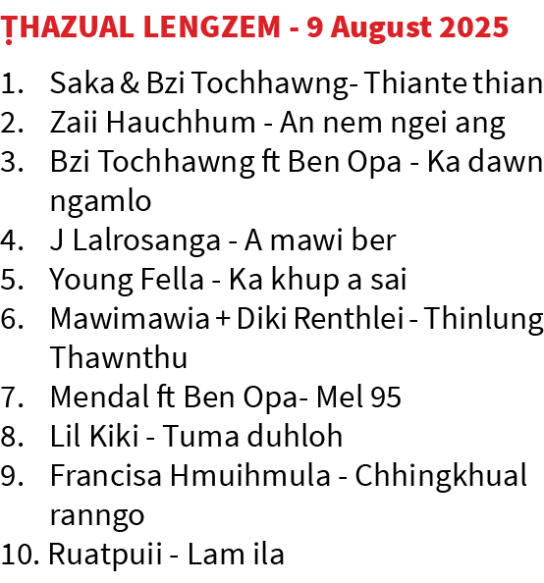 Hun eng emaw chen GIG Ṭhazual Lengzem chart luahlum tawhtu, chart hmasa lama pathumna, Saka & BZi Tochhawng te hla 'Ṭhiante ṭhian' a ṭha ber a, No 1 a ni ta.