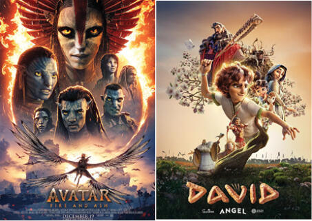 Film chhuak thar tur zinga thawm nei lian leh ngaihven hlawh, James Cameron kut chhuak 'Avatar: Fire and Ash' leh, Kristian sakhaw vuantu leh zuitute'n kan ngaihsan, lal Davida chanchin animated musical film, hmuhnawm taka siam 'David' tih chu vawiin hian khawvel hmun hrang hrangah en theiha tlangzarh an ni dawn.
