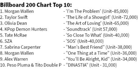 Billboard 200 album chart tharah hun rei tak chhung chart lo thunun tawh, Morgan Wallen chuan a album, 'I'm The Problem' hmangin Taylor Swift album thar ber chu a nek chhuak a, No.1-ah a rawn kaisang leh. Wallen hian a album hi chart-ah a zawn loa kar 13 No.1 a nihpuina chiah a ni a, album tihchhuah a nih hnu hian kar 34 chhung chart-ah hian a lang tawh bawk.
