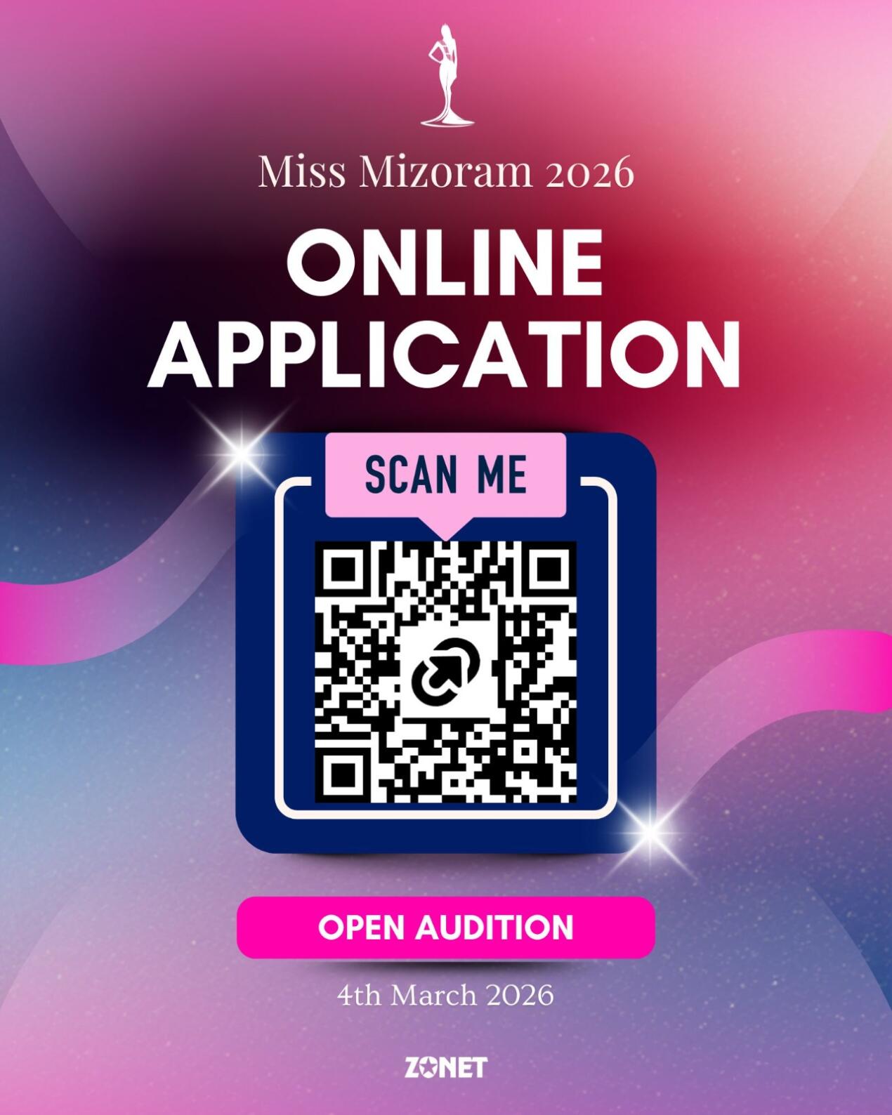 ZONET TV Pvt Ltd leh Mizoram Journalists' Association thawk dunin Miss Mizoram 2026 an thlan tura tel tumte tan inziah luh hun hawn ṭan a ni ta. Application form hi ZONET Office-ah lak chhuah theih a nih bakah, online-in theh luh theih a ni a, March 4 thleng theh luh theih a ni ang.