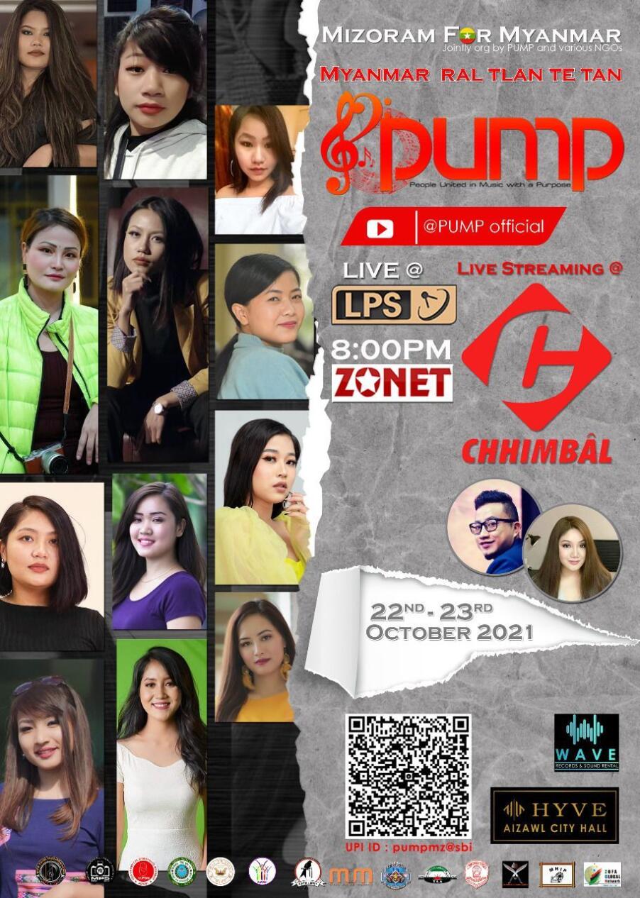 People United in Music with a Purpose (PUMP) leh NGO hrang hrang ṭangrualina an buatsaih tur Mizoram for Myanmar charity concert chu zanin leh naktuk zanah hian neih a ni dawn.