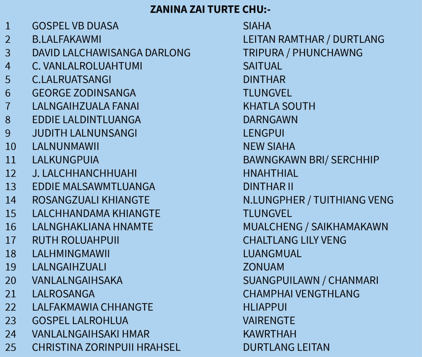 Mizor Idol Zanin aṭangin Top 50 ṭan dawn