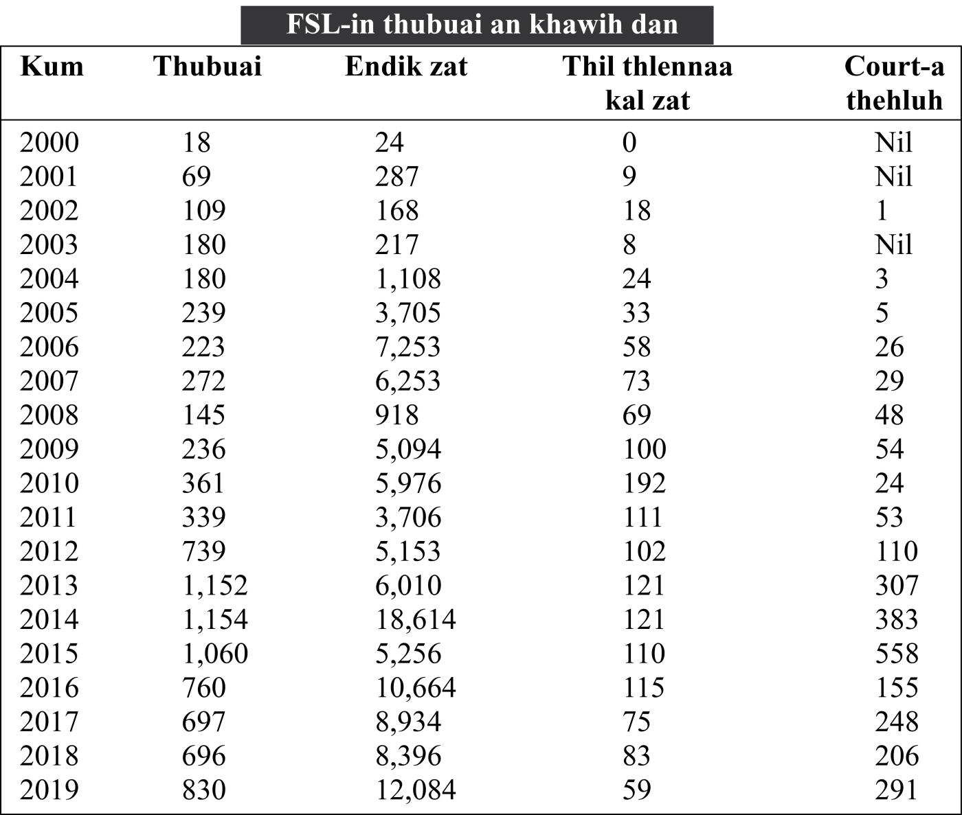 Kum 2019-ah FSL-in case 830-ah Thil chi hrang 12,084 an endik
