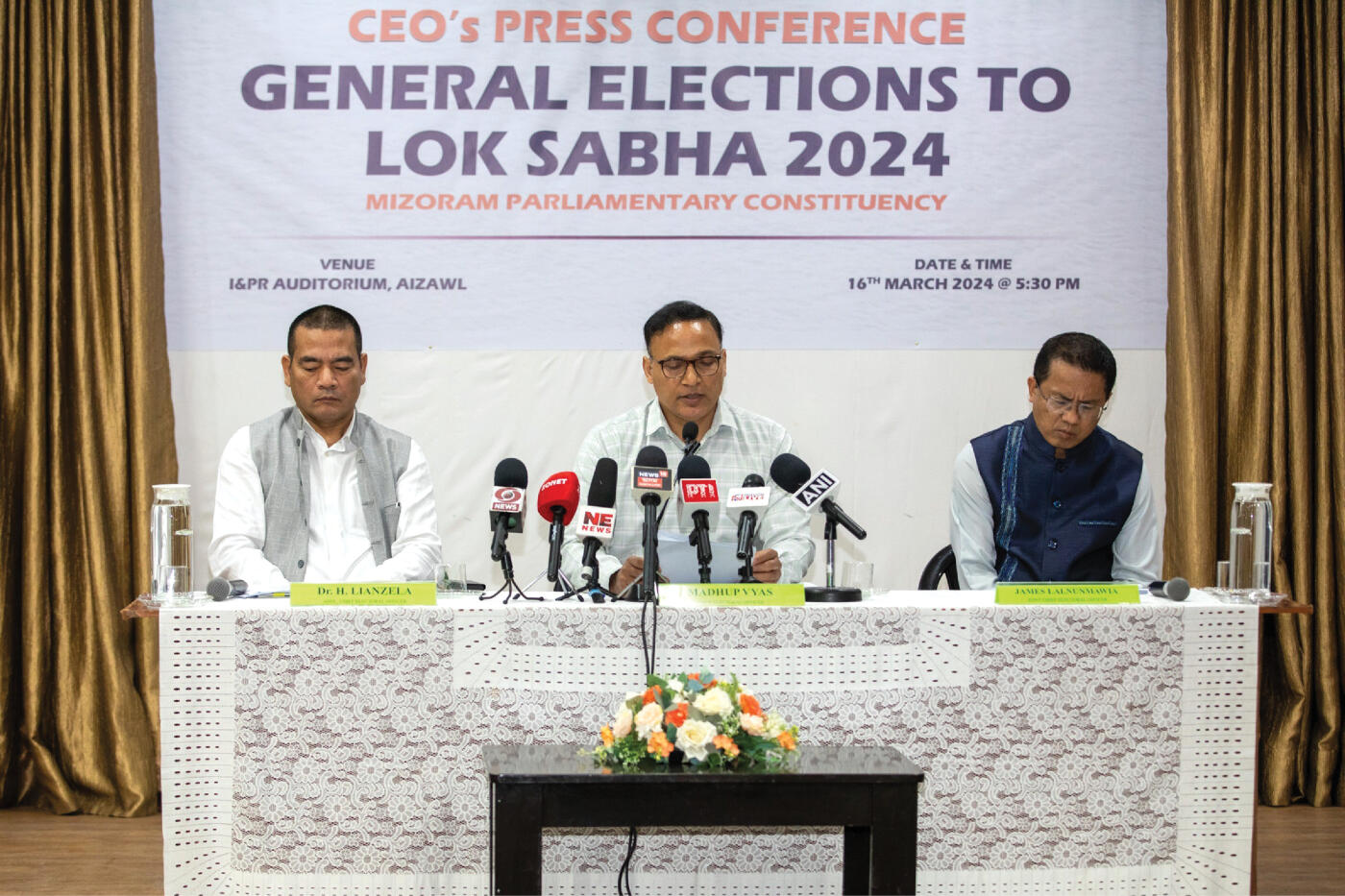 Mizoram chief electoral officer Madhup Vyas pawhin March 16, Inrinni tlaiah khan IPR Auditorium-ah press conference nei ve nghalin, Lok Sabha inthlan atana inbuatsaih dante a puang a; Mizorama vote nei zawng zawngte chu vote thlak vek turin a sáwm.