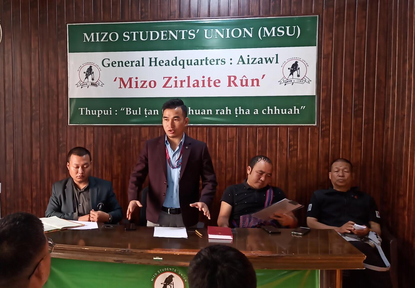 MSU General Headquarters hruaitute leh hnam pual zirlai pawl hruaitute chuan resolution siamin, "Tun hnaia Manipur-a Zo fate inkara inhriat thiam lohna thleng awm nia lang hi pawi kan tiin, ṭha kan ti lo," an ti a; Zo fate inkara inhmuh thiam lohna awm thei lakah fimkhurin turin mi tin an ngen.