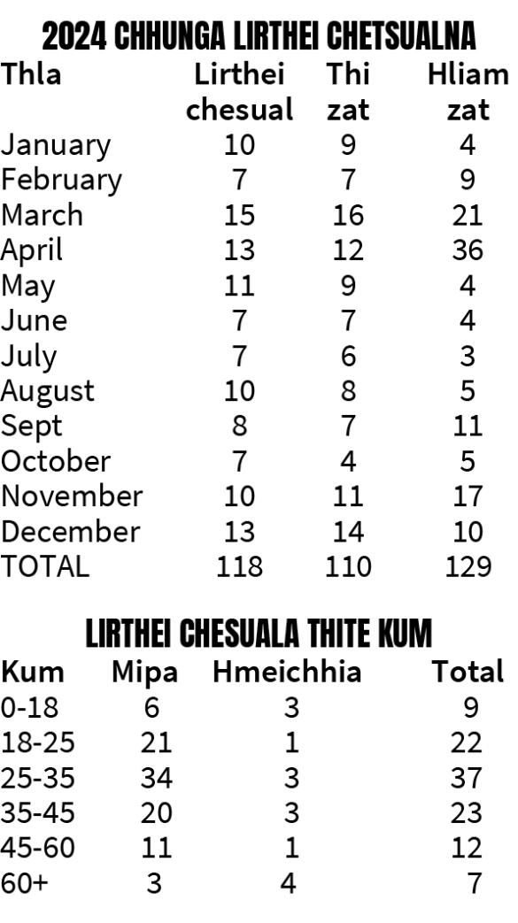 Kum 2024-ah lirtheia chetsualnaah mi 110 an thi, mi 129 an hliam