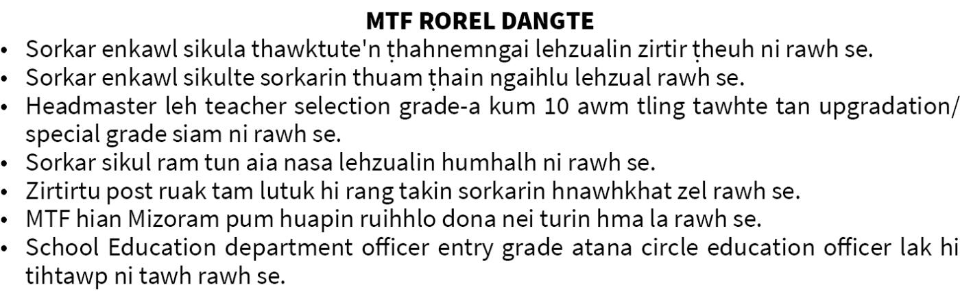 Mizoram Teachers' Federation (MTF) chuan, school academic session chu January-December anga kal leh an duh bakah, sorkar sikula uniform inang (common uniform) hman chu tihtawp a, sikul malin an duh dan anga uniform neih an duh.