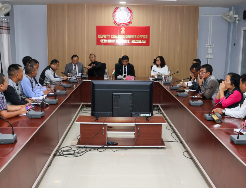 Land Revenue & Settlement minister B Lalchhanzova, Food, Civil Supplies & Consumer Affairs department enkawltu ni bawk kaihhruaiin tun hnai khan Serchhip DC meeting hall-ah LRS secretary Vanlalmawia leh FCSCA secretary Teresy Vanlalhruaii ten thuthar thehdarhtute an kâwm a; online-a ration card dilna siam tum a nih thu leh thingtlang khaw lian deuhah village revenue official (VRO) dah tum a nih thu an sawi.