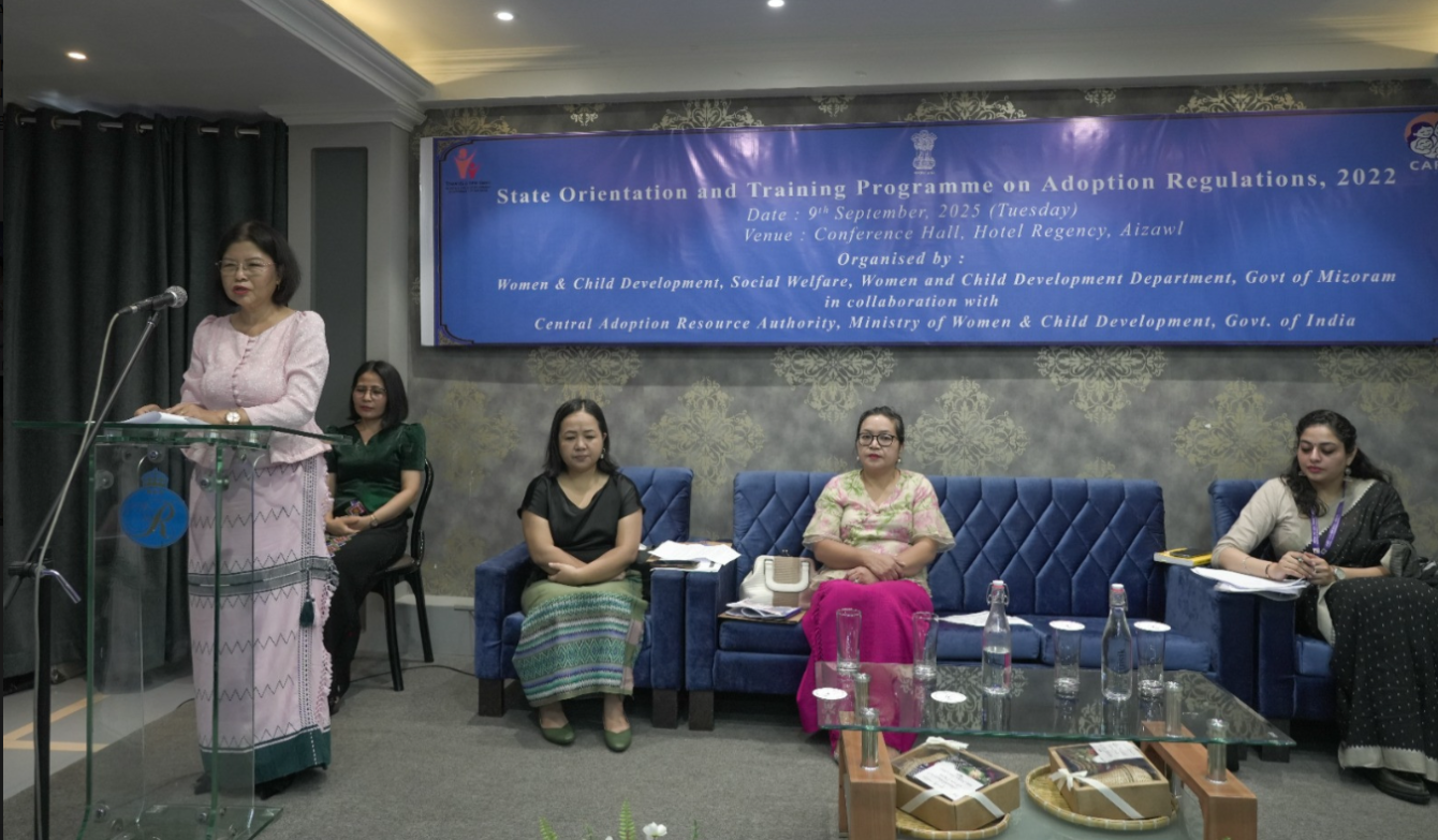 Orientation and Training Programme on Adoption Regulations, 2022 hi fa lak kaihhnawih buaipuitute puala buatsaih a ni a; SWWCD secretary Lalzarmawii leh WCD joint director Sailopari te pawhin thu an sawi. Mithiamte'n kal khawmte hnenah thil pawimawh an zirtir a, sawihona hun hman a ni.