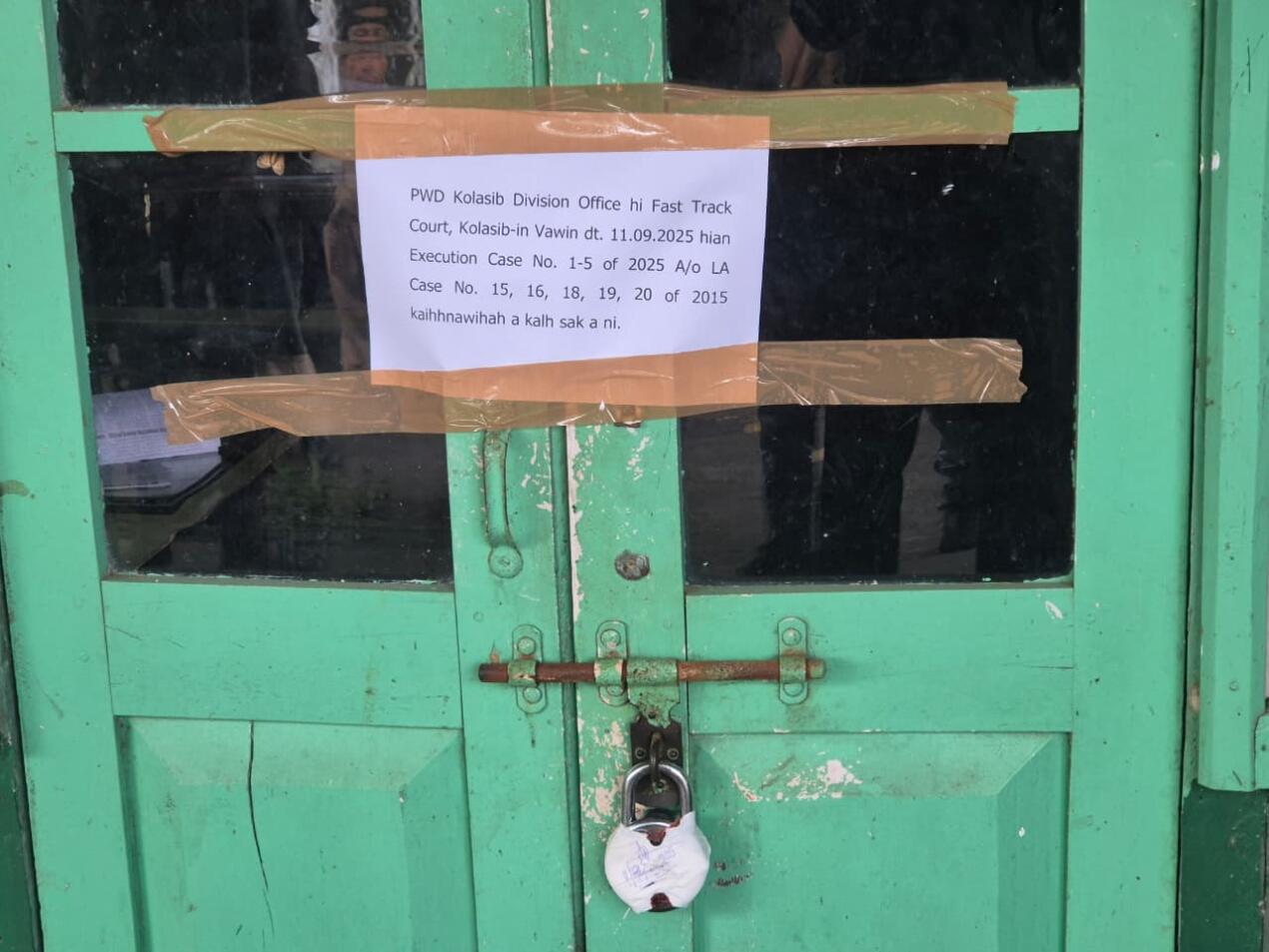 Court chuan PWD office lirthei leh JCB bakah, khawl lian dang eng emaw zat chu a hrènsak nghal a; a ṭul ang zelin Code of Civil Procedure, 1908-in thuneihna a pek angin office building leh JCB bakah, khawl lian dangte leh office computer-te pawh lilâm theih a ni bawk.