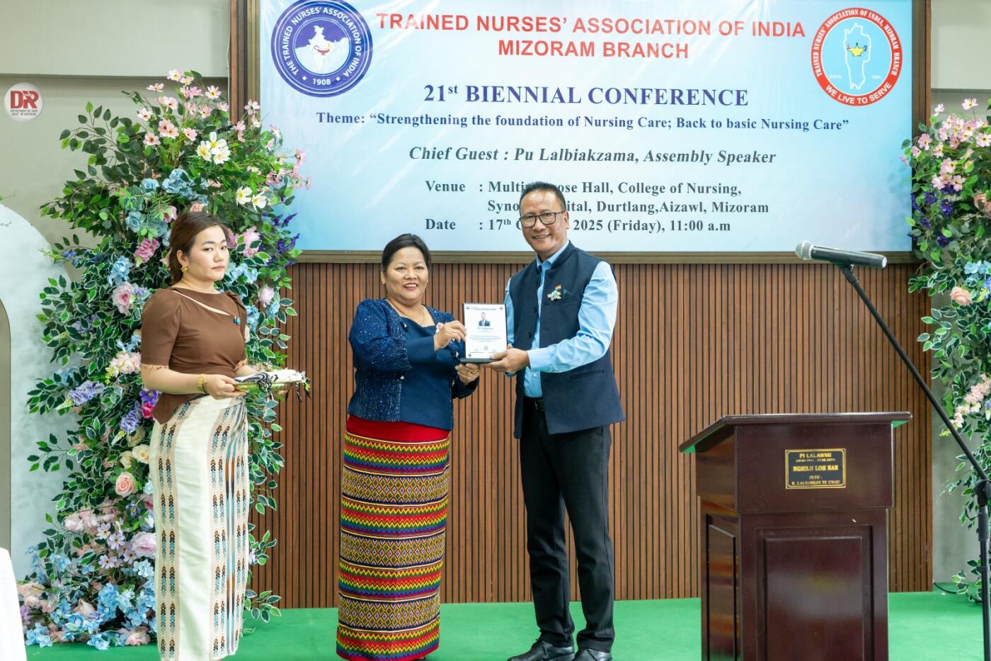 Trained Nurses Association of India (TNAI), Mizoram State Branch chuan nimin khan Synod Hospital College of Nursing auditorium-ah Biennial Conference vawi 21-na an hmang a, Assembly speaker Lalbiakzama'n a hmanpui.
