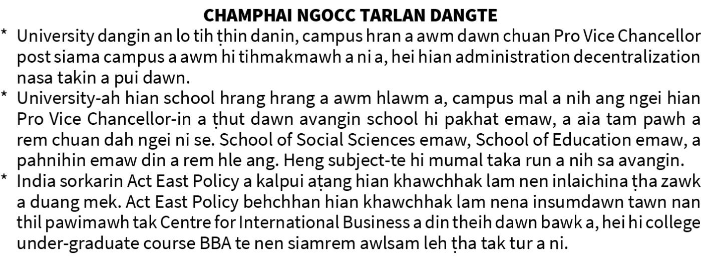 Champhai District NGO Coordination Committee chuan Champhaiah Mizoram State University (MzSU) Eastern din turin November 26, 2025 khan chief minister Lalduhoma an ngen. Mamit District Ṭhalai Pawl-in Mamitah MzSU Western Campus dah turin Higher & Technical Education Minister an ngen bawk.