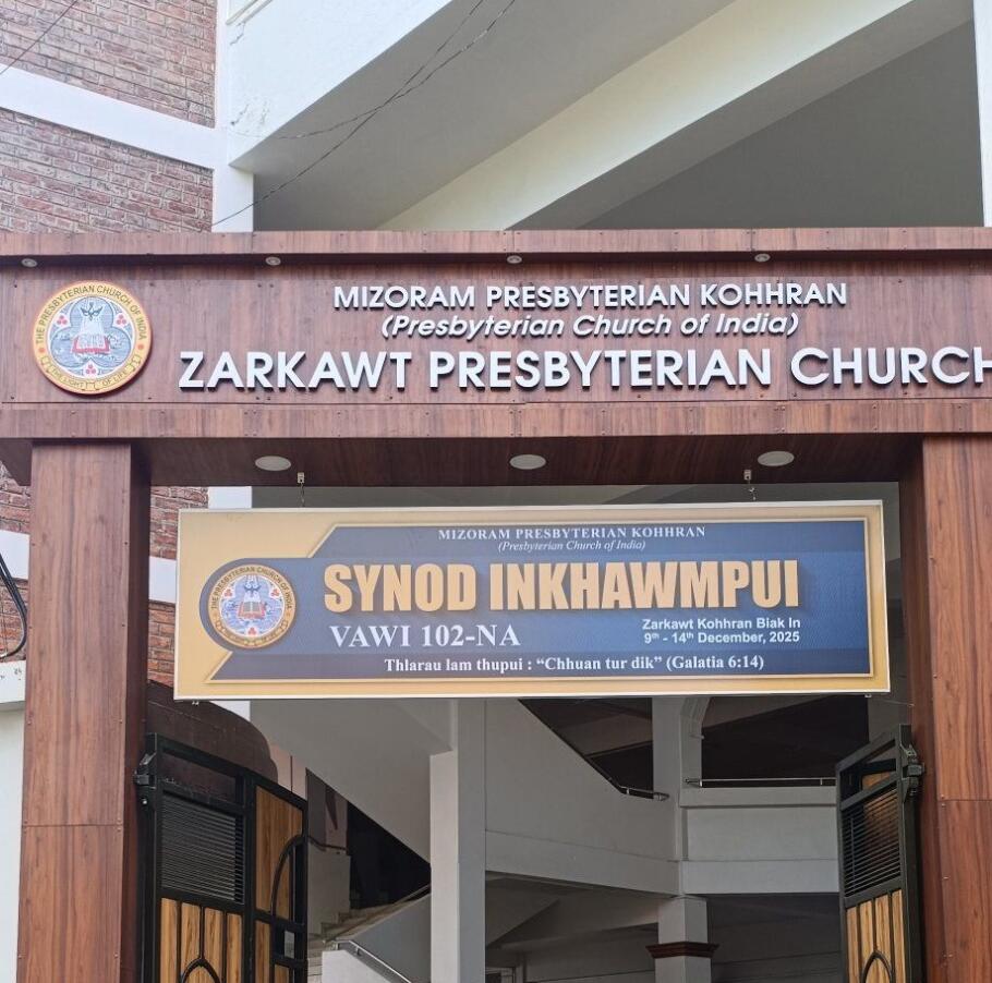 Synod Inkhawmpui vawi 102-na chu nizan khan Zarkawt Kohhran biak-inah ṭan a ni a, December 14, Pathianni zanah a ṭiak ang. Vawiin chawhma aṭangin moderator thar Rev. John Raldosanga kaihhruaiin rorel a ni dawn a, Inrinni thlengin chhun lamah rorel a ni ang a, zanah vantlang Pathian inkhawm a awm ṭhin ang.