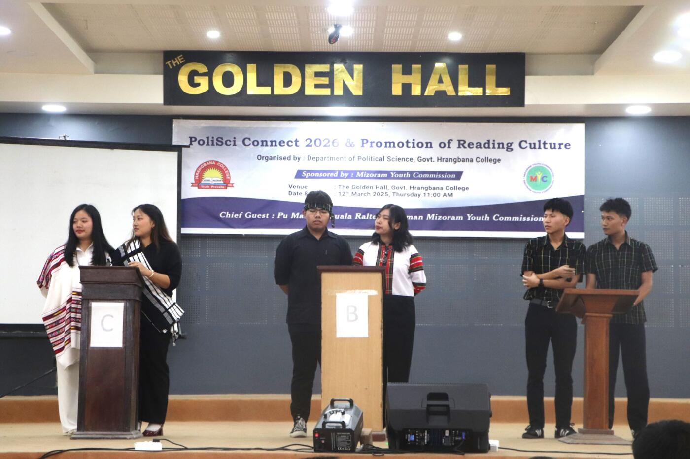 Mizoram Youth Commission (MYC) bultumin Hrangbana College-a Department of Political Science chuan nimin khan 'PoliSci Connect (Political Science) Festival & Promotion of Reading Culture' an buatsaih a; MYC chairman Malsawmzuala Ralte-in a hmanpui.