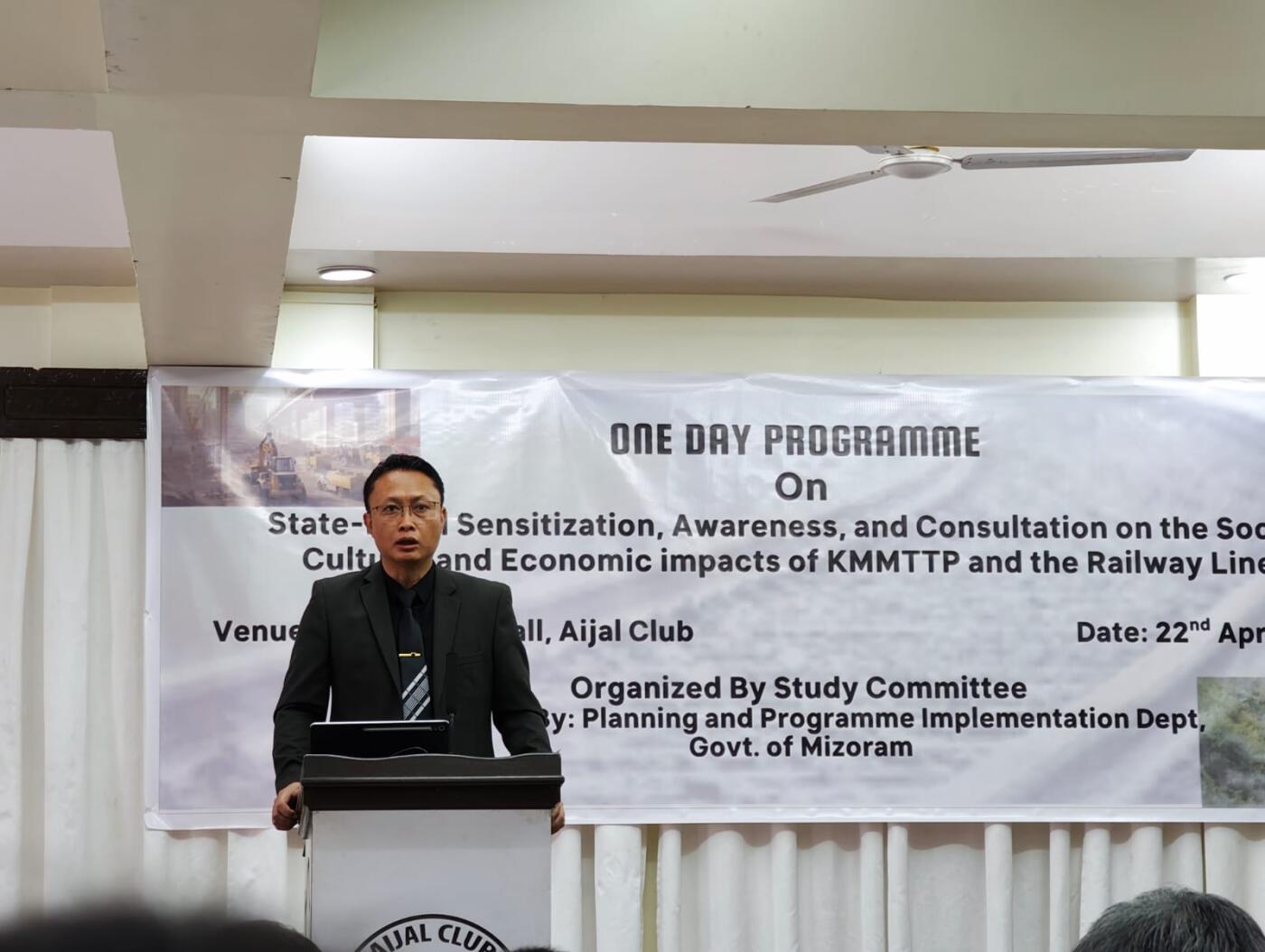 Mizoram sorkarin rêl kawng leh KMMTTP-in nghawng a neih tur zir chiang tura Study Committee a din, T Lalhlimpuia, MLA kaihhruai chuan nimin khan Aijal Club-ah 'Sensitization, Awareness and Consultation on Socio-Cultural and Economic Impact of the KMMTTP and Railway Line from Bairabi to Sairang' an buatsaih.