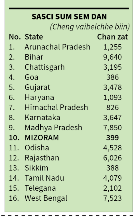 SASCI-ah vbc. 56,415 ruahman Mizoramin vbc. 399 chang dawn